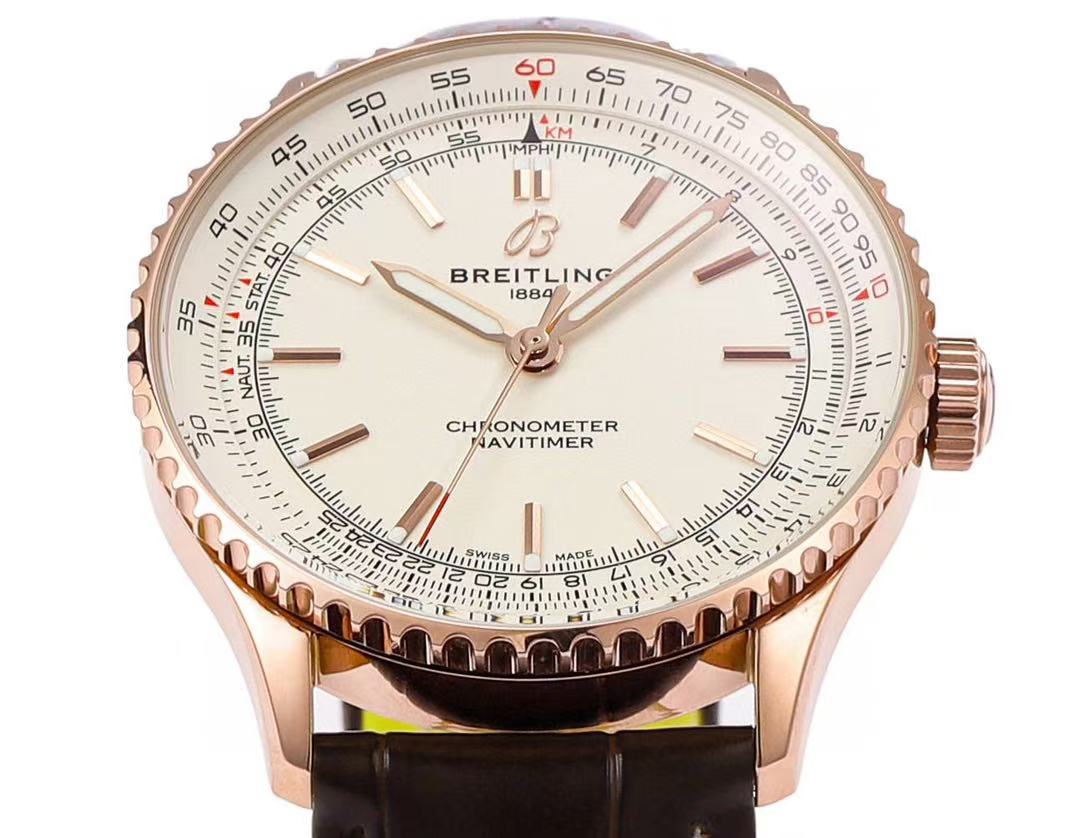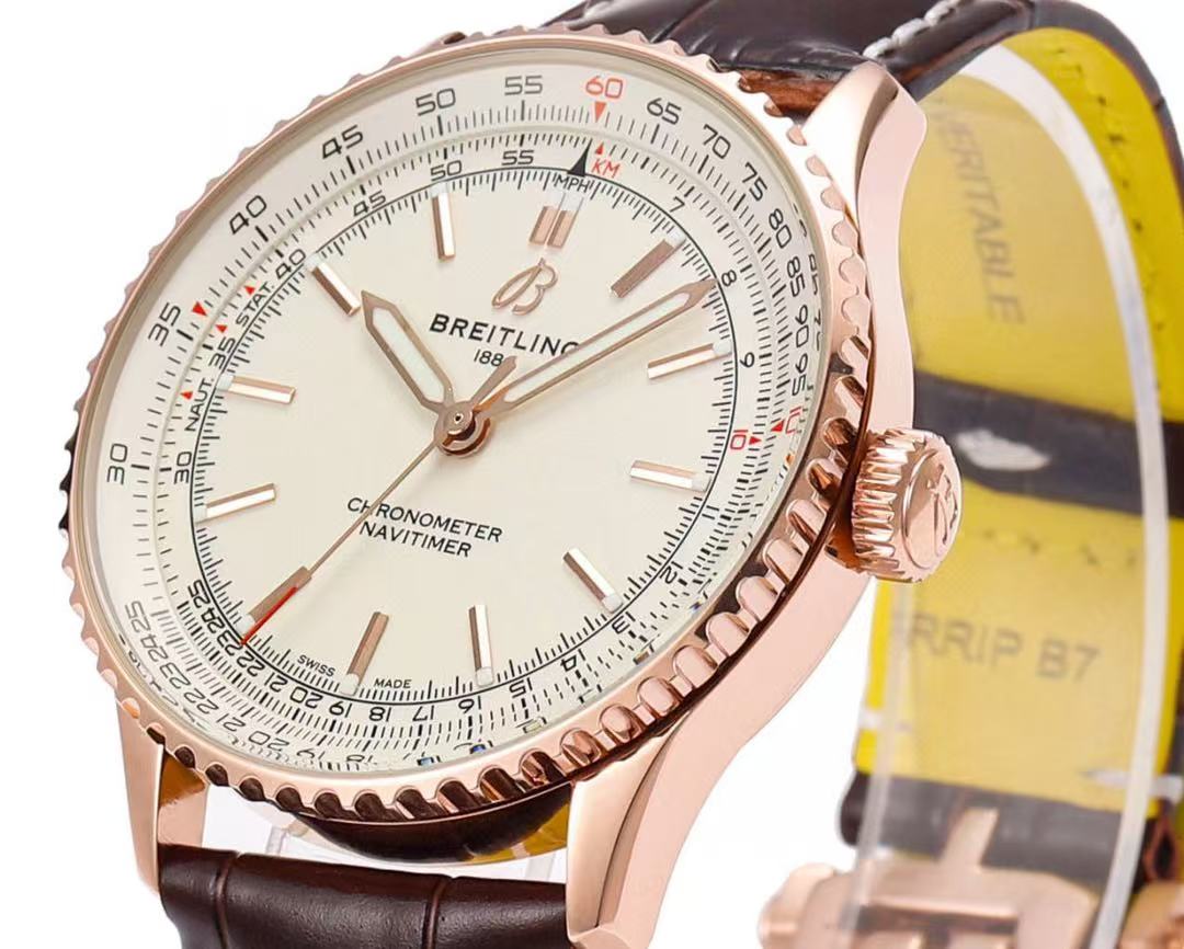 • BREITLING Navitimer AUTO 41MM 18K Rose Gold Leather Men's Watch