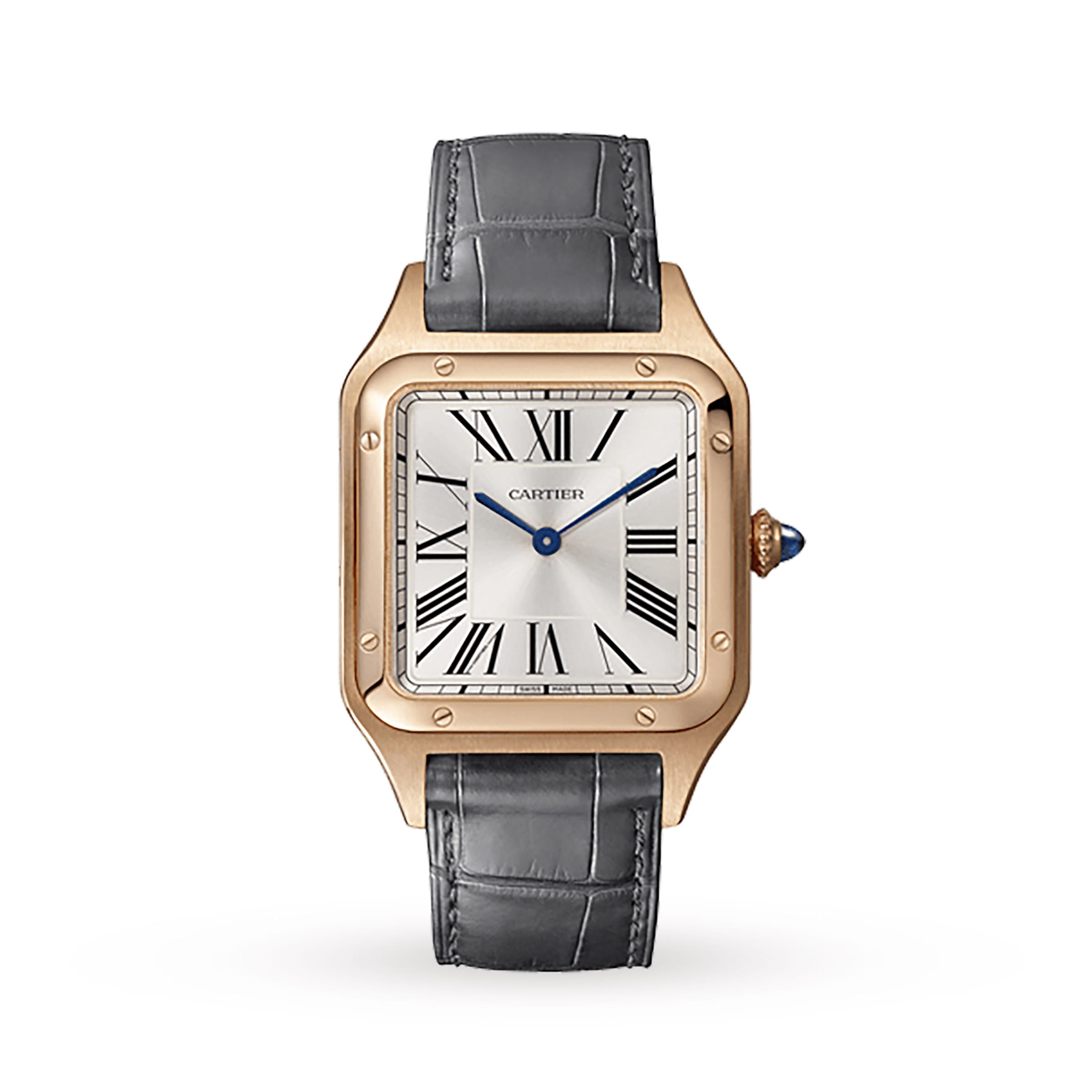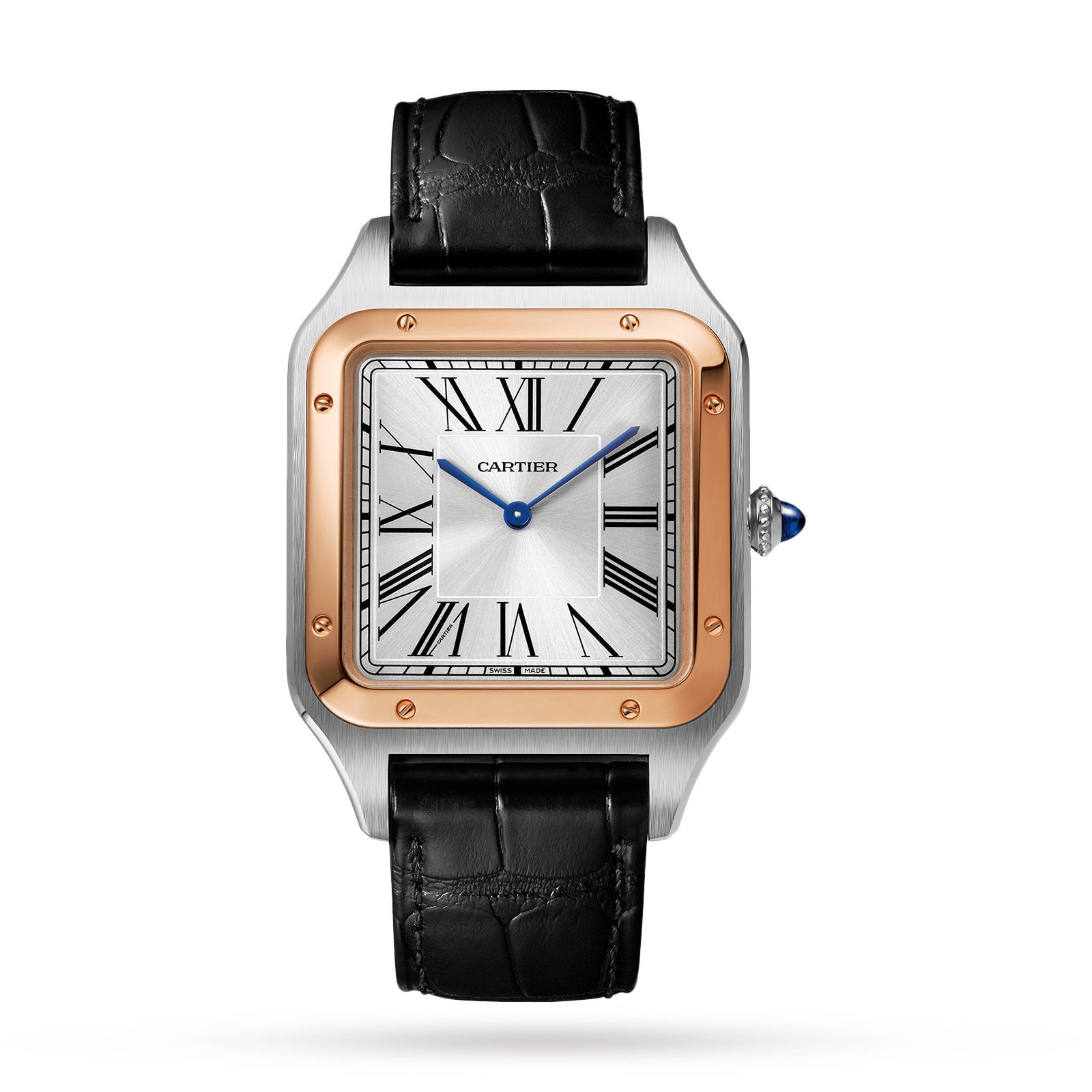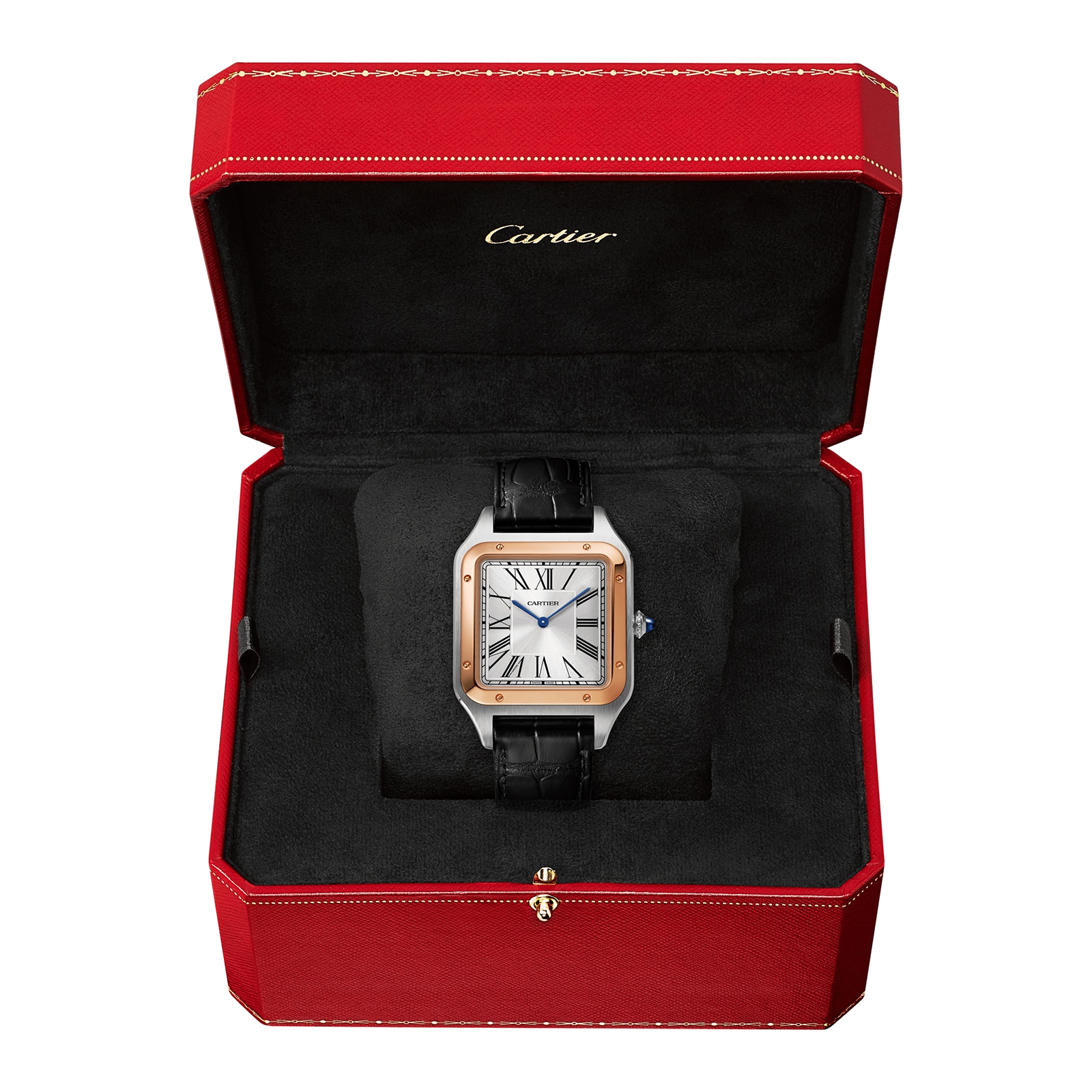 Cartier Santos-Dumont Watch Extra-large Model, Hand-Wound Mechanical Movement, Rose Gold, Steel, Leather-P17311100