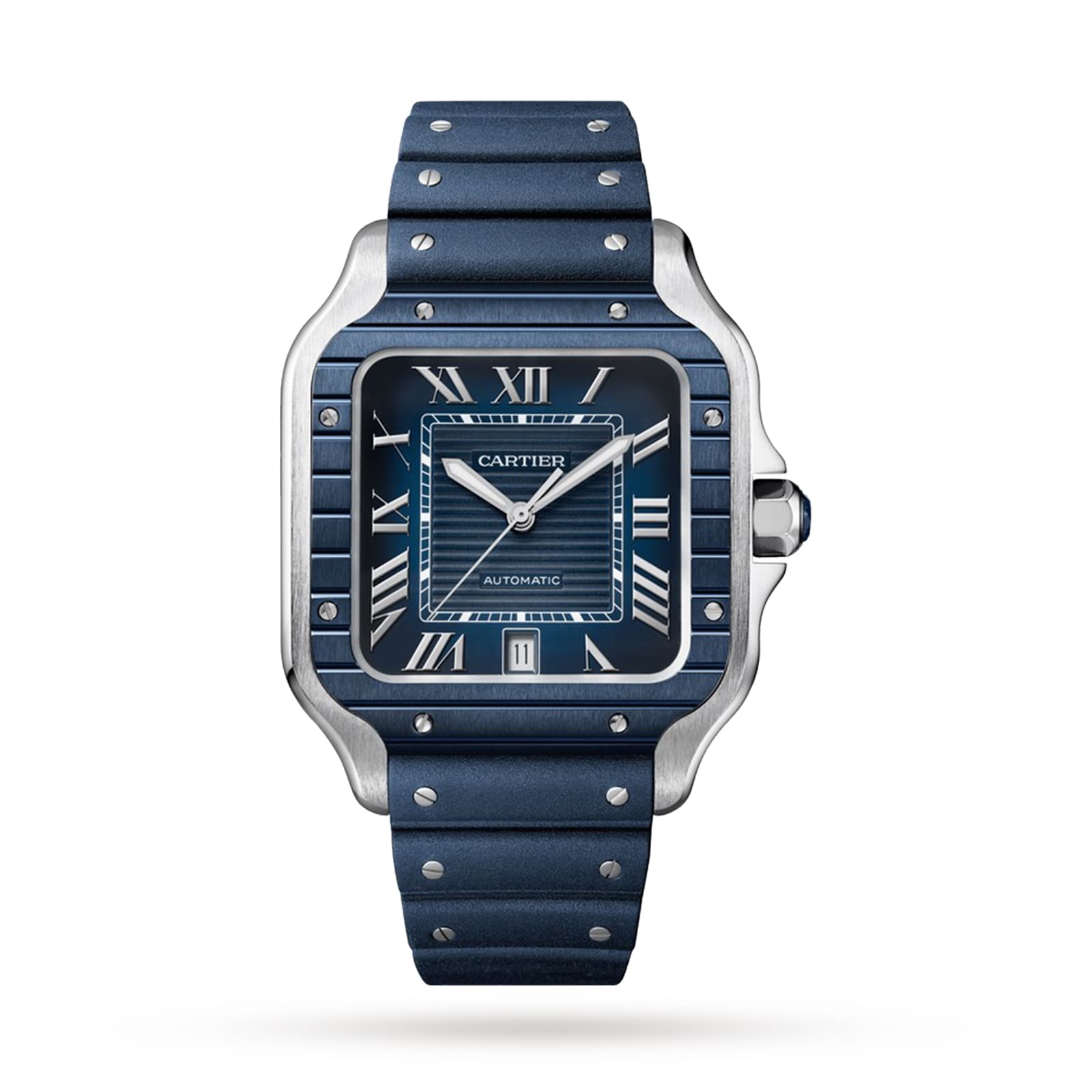 Cartier Santos De Cartier Watch Large Model, Automatic Movement, Steel, ADLC, Interchangeable Metal And Rubber Bracelets-P17311097