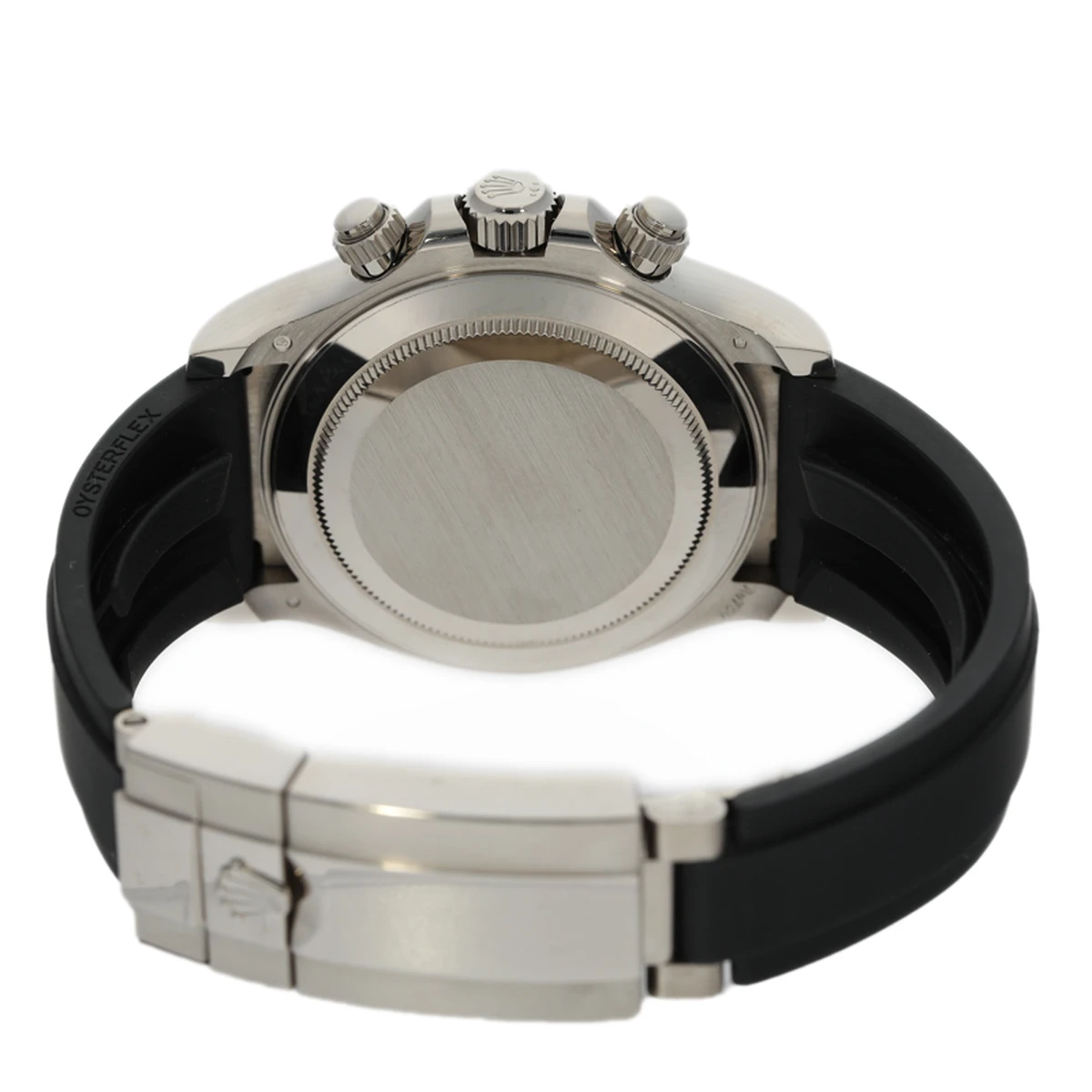 Coming soon! This item will be available to ship in 3-6 weeks. Photo is representative-only.Pre-Owned Rolex Cosmograph Daytona (116519LN) self - winding automatic watch, features a 40mm 18k white gold case with a black Cerachrom bezel surrounding a steel dial on a black Oysterflex bracelet with an 18k white gold deployant buckle. Functions include hours, minutes, small seconds, chronograph and tachymeter.This watch comes complete with the original box and papers. Scattered Serial.We back this watch with a 2-Year WatchBox warranty!