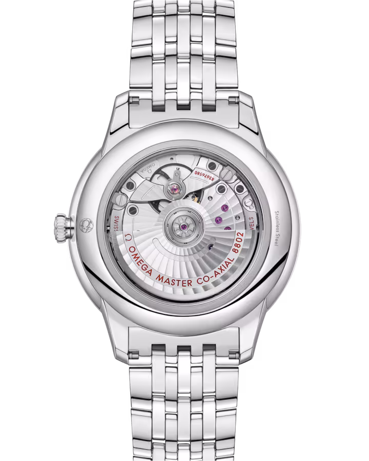 This Master Chronometer certified watch is presented on a stainless steel bracelet and is driven by the OMEGA Master Co-Axial Calibre 8802, which can be admired through the scratch-resistant sapphire crystal caseback.