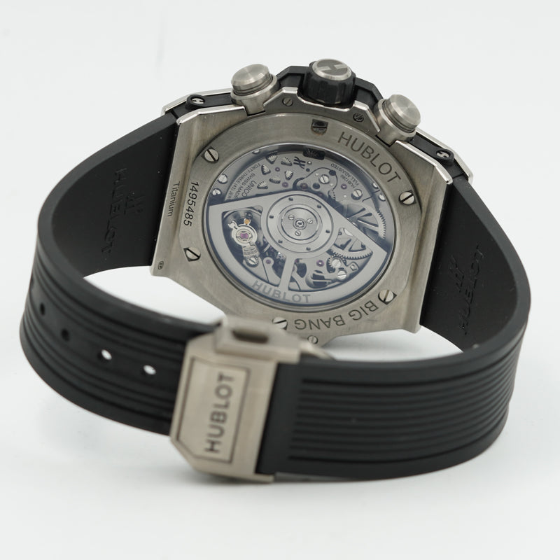 SOLD - This Hublot Big Bang Unico was recently traded in to our store and is in very good condition! This model is in a 42mm titanium case with a titanium bezel. The watch features a skeletonized dial peering into the in-house Unico movement! The watch will come with its full box and papers and be covered by the remainder of its factory warranty. Please let us know if you have any further questions.