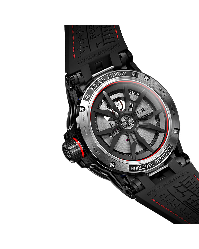 DIAL- Blue lower flange with transferred texts and minute tracks. White upper Flange with screw-like hour markers rhodium plated and filled with SLN. Bi-material strap - rubber and grey Alcantara Skeleton 12 balance. Highly technical and designed watchmaking inspired by the automotive world.Inspired by the automotive world, the RD630 was developed specifically for the partnership with Lamborghini Squadra Corse. The calibre is built with a twin barrel power supply allowing it to reach a power reserve of 60 hours. The calibre structure is designed like a super-car engine with strut-bars forming a clear and visible visual signature. The rotor is designed like a super car wheel rim.