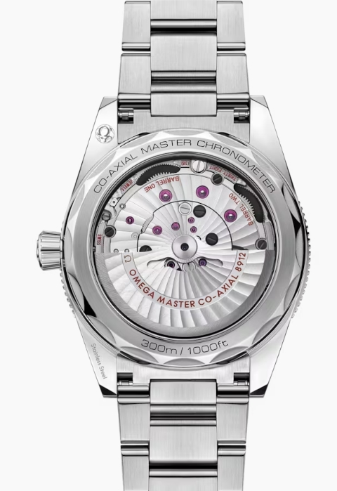 The 41 mm grade 5 titanium case is presented on a grade 5 titanium and 18K Sedna™ gold bracelet. A transparent caseback makes it possible to see the anti-magnetic OMEGA Master Co-Axial calibre 8400 within.