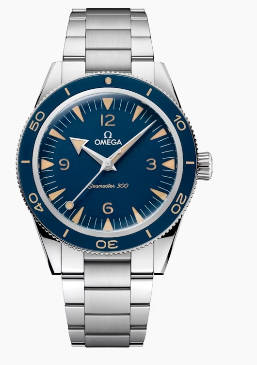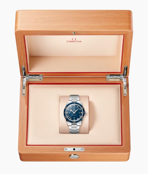 More than half a century later, the timepiece makes a comeback in a completely upgraded and enhanced form, ready for a new generation of adventurers. This Seamaster 300 has a sand-blasted blue dial with 18K Sedna™ gold hands coated with "vintage" Super-LumiNova. The 18K Sedna™ gold bezel has a Ceragold™ ring and diving scale.