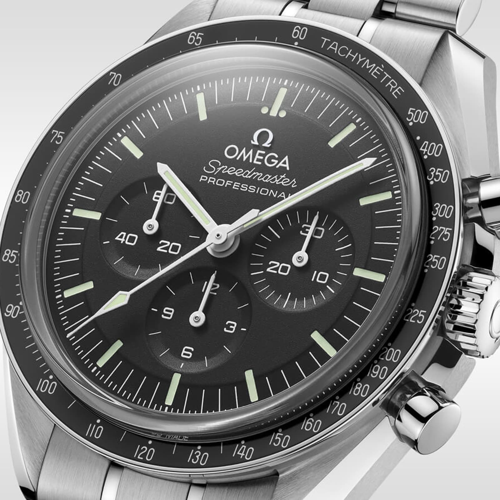 - Inspired by the 4th generation Speedmaster style worn on the moon