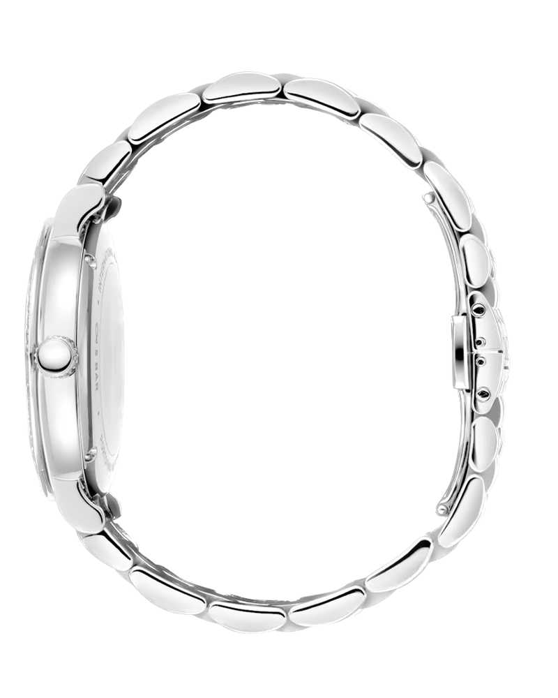 With a design that is both refined and restrained, the Portofino exudes notable freshness and purity. Thanks to its reduced case size of 34 millimeters, the Portofino Automatic 34 fits perfectly on slender wrists and offers excellent wearing comfort. It also marks a return to the beginnings of this line in the 1980s, when IWC released a number of Portofino references with similarly small case sizes. This model features a stainless steel case, a silver-plated dial, and rhodium-plated hands and appliqués. The case and the dial are decorated with 66 diamonds weighing almost 1 carat. Because of an improved setting, the diamonds reflect the light better and have a more visible presence and added brilliance. This timepiece is fitted with a high-grade 5-link stainless steel bracelet, offering high wearing comfort. Thanks to the integrated quick-change system, it can easily be exchanged.