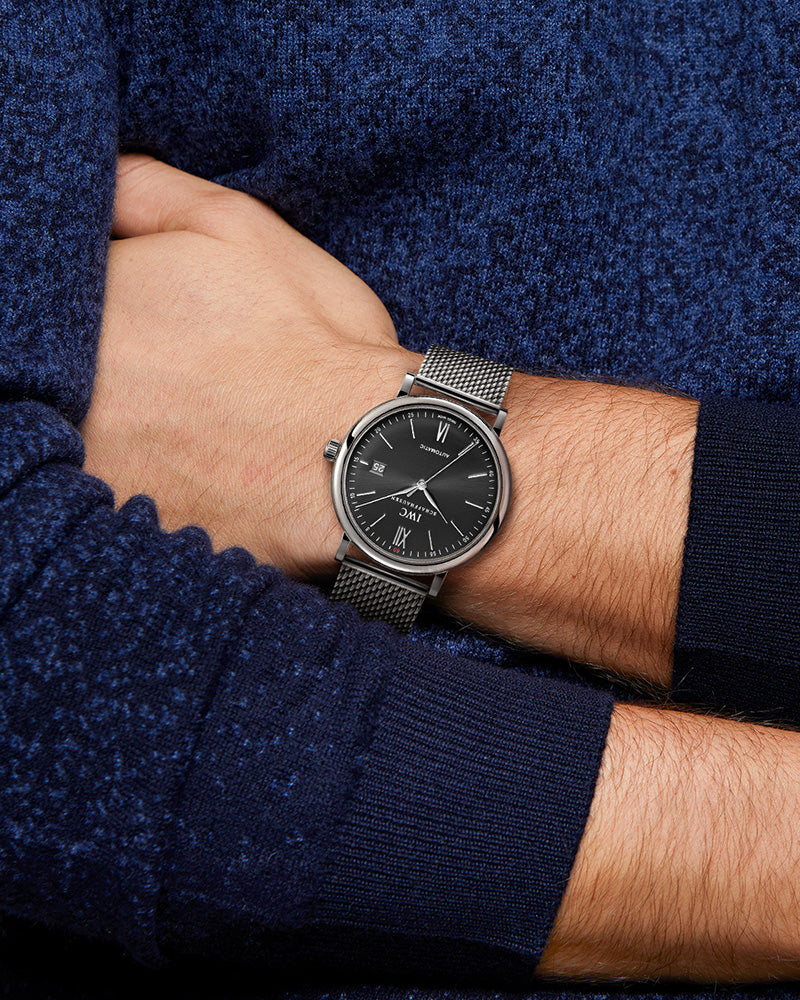 PORTOFINO AUTOMATIC - The Portofino Automatic with a black dial and Milanaise mesh bracelet in stainless steel is optionally available with an leather strap. The solid, mechanical automatic movement reliably ticks away the time. The evenly rounded sides of the 40-millimetre stainless-steel case make it appear even slimmer.