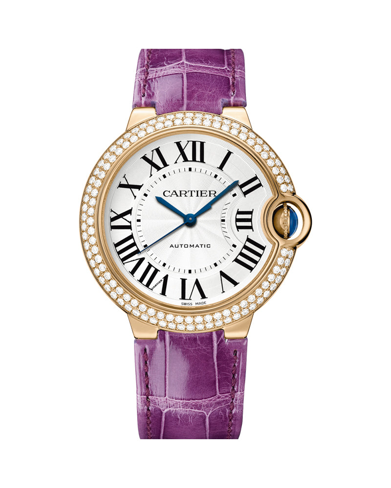 BALLON BLEU DE CARTIER, 36 MM, ROSE GOLD, LEATHER, DIAMONDS