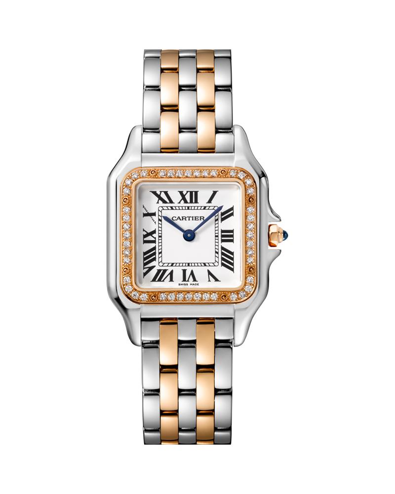 PANTHERE DE CARTIER, MEDIUM, ROSE GOLD AND STEEL, DIAMONDS